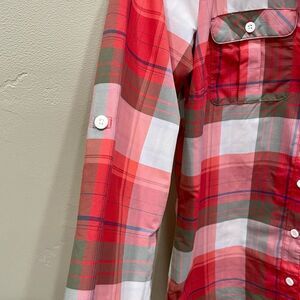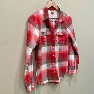 Eddie Bauer Women's Pink Flannel Plaid Button Down Long Sleeve Shirt
