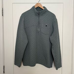 Eddie Bauer Quilted Sweater Mens Sz TXL Green Henley 1/4 Zip Pullover Outdoor