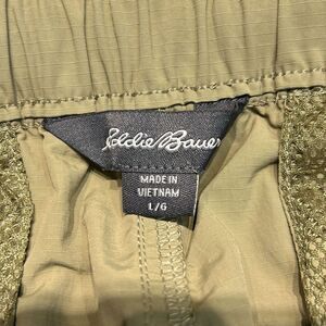 Eddie Bauer RipStop Tech Shorts Mens Sz Large Khaki Tan Adjustable Belt UPF