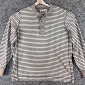 Eddie Bauer Shirt Mens XL Gray Stripe Henley Thermal Outdoor Hiking Camping Hunt