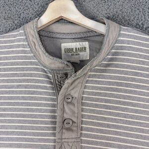 Up for sale is an Eddie Bauer Shirt Mens XL Gray Stripe Henley Thermal Outdoor Hiking Camping Hunt. It is gently pre-owned and in great shape with no visible issues observed - check out the pics for details.