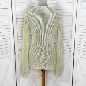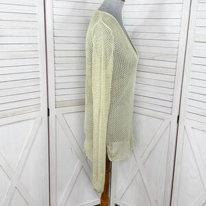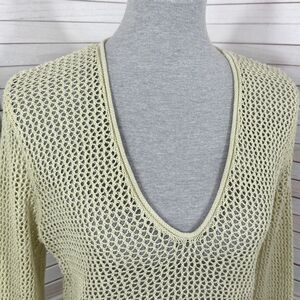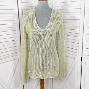 Eddie Bauer Vintage Linen Open Weave Mesh V Neck Tunic Sweater Green Medium