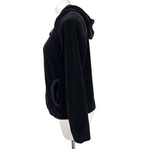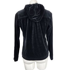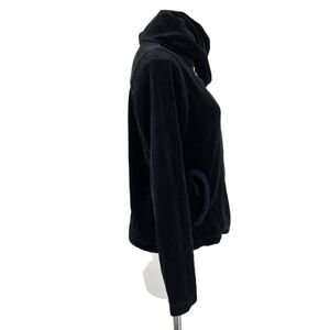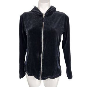 Eddie Bauer black velour hooded zip front jacket Size Large