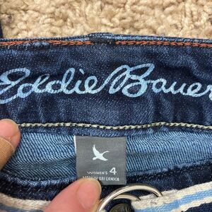 Eddie Bauer curvy crop jeans with Striped Belt Marilyn Monroe vibes runs big