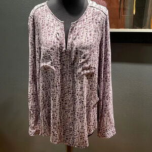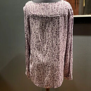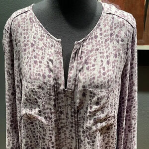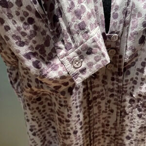 Eddie Bauer shade of purple abstract dot pleated placket flowy top. Size large.