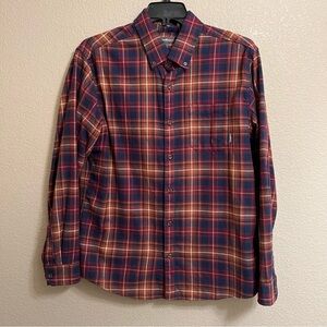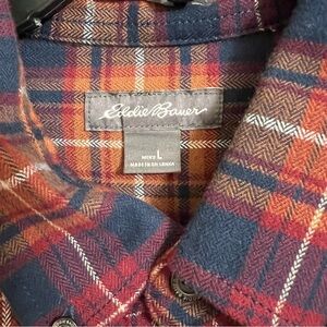 Eddie Baurer 100% Cotton Red Blue Plaid Flannel Shirt Mens Size L Classic Fit