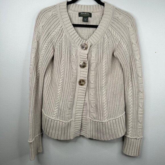 Eddie Baurer 100% cotton beige knit heavy cardigan size small