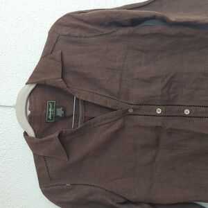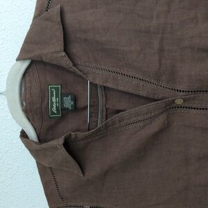 Eddie Bayer 100% Linen Botton Down V-Neck Top Brown Women's XS Lagenlook