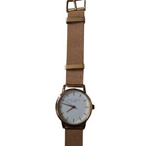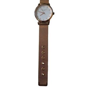 Eddie Borgo women's rose gold colored wrist watch has quartz movement and stainless steel back. The battery is new. There are a a few scratches on the back of the watch.