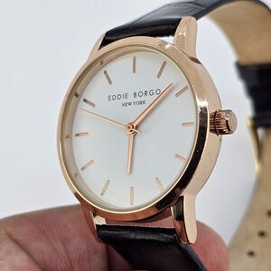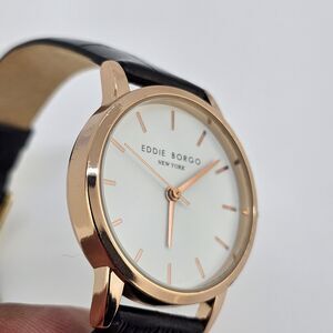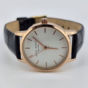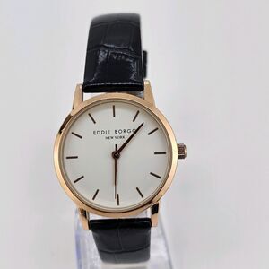 Eddie Borgo Women's Watch 32MM White Dial Black Leather Bands 7" New Battery