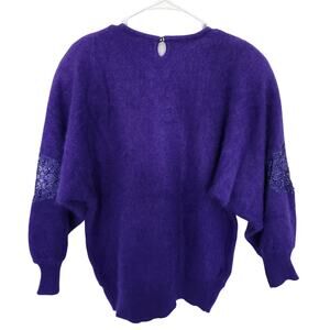 Eddie Dassin Vintage Angora Blend Embroidered Sweater L Purple Cozy Retro 80s.