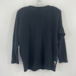 Eddie Dassin Vintage Rainbow Sequin Beaded Black Wool Angora Sweater Womens S