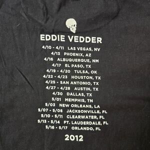 Eddie Vedder Size XL Black Cotton 2012 Tour Short Sleeve T Shirt