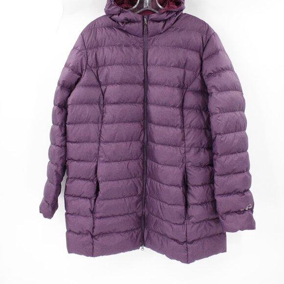 Eddie bauer coat Women's XL 650 Down Fill Packable Quilted Puffer Purple Hooded