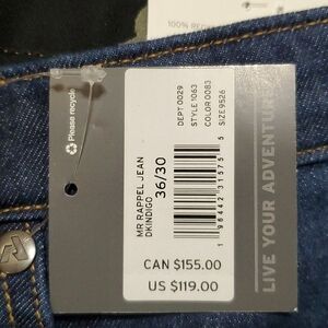 rappel jeans by Eddie bauer dark wash retailed for 119.00