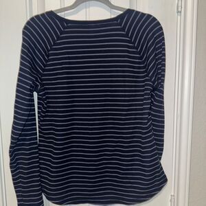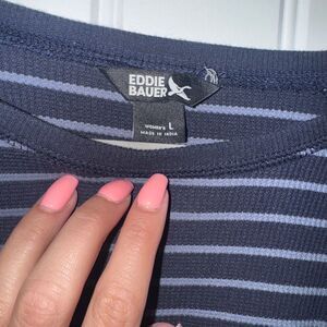 Eddie Bauer Blue and White Fitted Long Sleeve T-Shirt