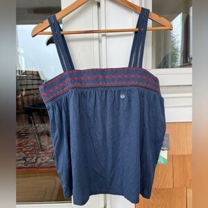 Eddie Bauer Gate Check Embroidered Navy Blue Square-Neck Tank Top | Size Medium