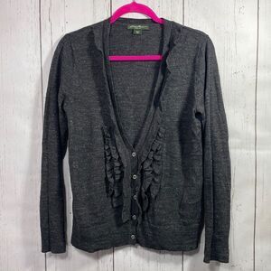 Eddie Bauer Gray Ruffle Long Sleeve Button Front Sweater Cardigan