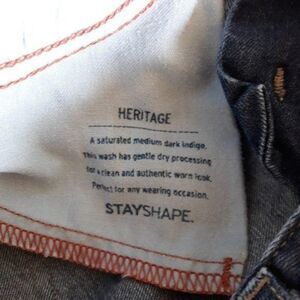 Jeans Curvy Straight Heritage stay shape Indigo color mid rise 5 pocket zip up by Eddie Bauer.