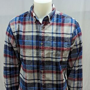 Eddie Bauer Men's Blue Checkered Classic Fit Cotton Button Up Shirt Size Large