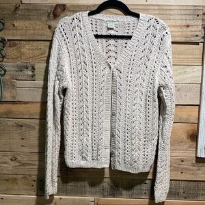 EddieBauer Oatmeal Chunky Button Up Shawl Sweater