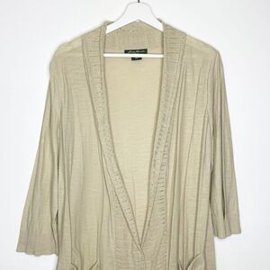Eddie Bauer Open Front Tan Lightweight Cardigan Sweater Cotton Womens Size Large