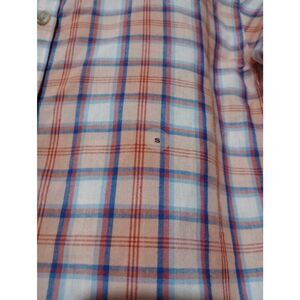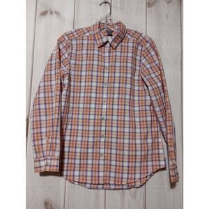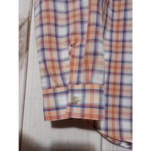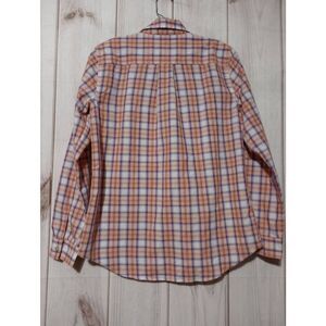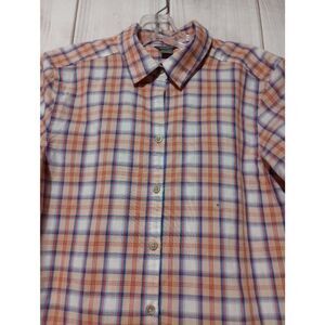 Eddie Bauer Shirt Ladies Small Button Front Long Sleeve Blue Peach Plaid Hiking