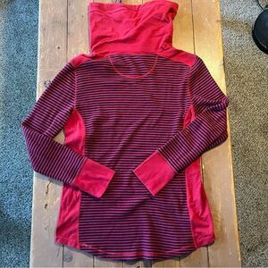 Eddie Bauer red and blue striped cowl neck long sleeve shirt In good used condition