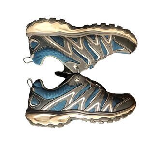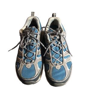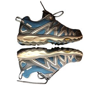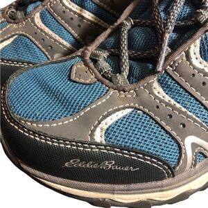 Eddie Bauer women’s Mid Lite hiking walking lace up comfort shoes with Vibram Sole. Blue and gray. Mesh EUC