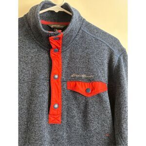 Eddie Bauer men’s Large navy sweater/ sweatshirt with red snaps