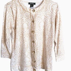 Eddie Bauer Cardigan Beige/White pattern SP