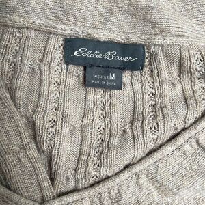 Eddie Bauer Cable Knit V-neck Sweater. Size Medium. Color: Oatmeal