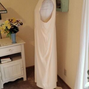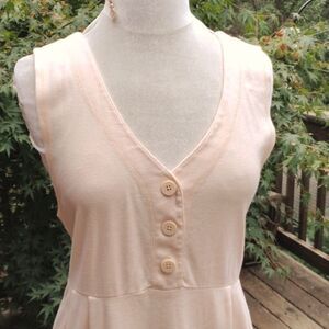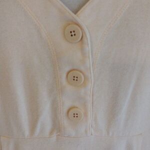 So comfortable and cool for warmer weather. 100% cotton. Buttery yellow. Size L measures 48 at chest, 52 under chest, 58 at hips, pockets here. 52 long from shoulder to hem.
