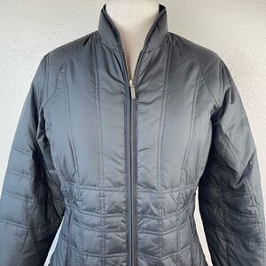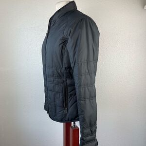 Great goose down jacket featuring an adjustable waist fit. It is in excellent preowned condition and measures 2 inches armpit to armpit laying flat and 25 inches in length from shoulder to hem.