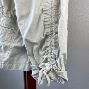 Classic light weight khaki style jacket measuring 21 inches armpit to armpit laying flat and 24 inches in length from shoulder to hem.