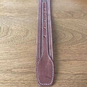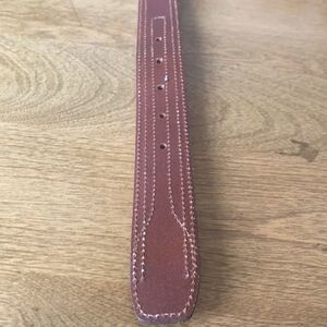 Looks to be new, made in Italy. Combination of leather and canvas. One small crease in canvas - see last photo. Length is 34”.