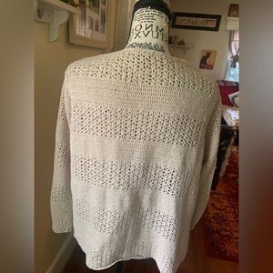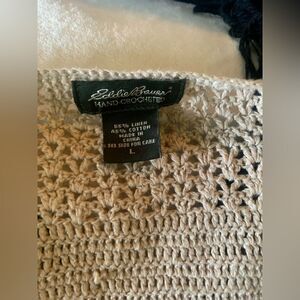 Eddie Bauer cotton linen blend crocheted cardigan size large in tan.