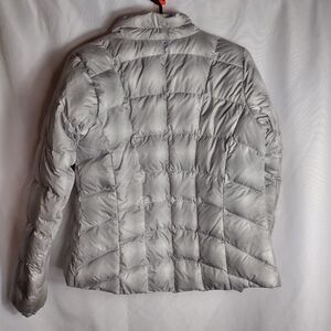 gray plaid, see close up pictures, down puffer coat.  pit to pit 20 " length 24"