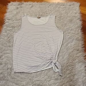 Eddie bauer womens gray and white stripped polyester stretch tank top wirh side tie size large