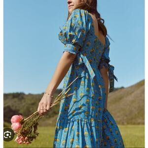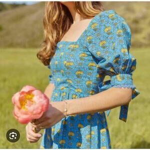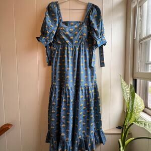 Eddy Barbara Square neck dress size 8 Lapis & Laguna Floral Blue NWT