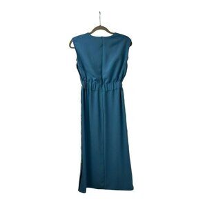 Edeline Lee Women's Size 4 Midi Dress With Side Button Detail Blue Sleeveless