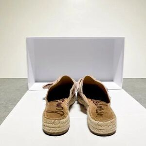 These chic slip-on sandals by Edelman feature a delicate faded pink color with a charming bow tie detail on top. Perfect for adding a feminine touch to any outfit, these sandals are ideal for warm weather, whether youβre heading to the beach, running errands, or enjoying a casual day out.