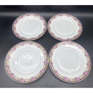 Edelstein Bavaria 2471 White Pink Floral Gold Edge 10” Dinner Plates Set Of 4