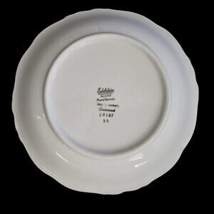 Color/Pattern: White with pink floral Clairmont pattern; scalloped embossed rim