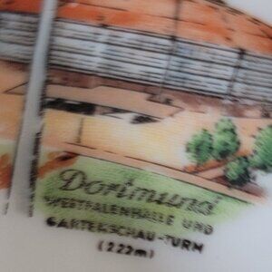 This vintage Edelstein Bavaria demitasse cup and saucer set celebrates Westfalen Halle