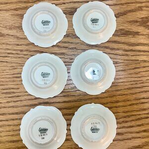 Small trinket / bon bon dishes in very good condition. I find no visible chips or flaws. A couple dishes have a small dark spot however, it is appears to be under the glaze. See photos for details.