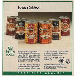 Eden Foods Certified Organic Beans Vintage 1991 Print Ad Clinton Michigan u