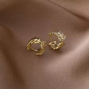 “Eden” Leaf Hoop Diamond Gold Elegant Dainty Circle Casual/Formal Gift Earrings