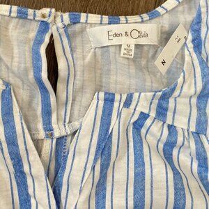 Eden & Olivia Blue & White Striped Sleeveless Button-Back Blouse - Size M NWT