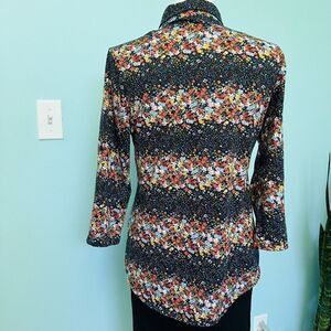 Eden & Olivia M Black Floral Flower Button Down Top Comfy Roll Up Sleeves 0767